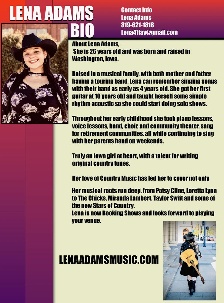 Lena Adams is a passionate musician dedicated to delivering unforgettable performances. With a unique blend of genres, she captivates audiences and creates memorable experiences.